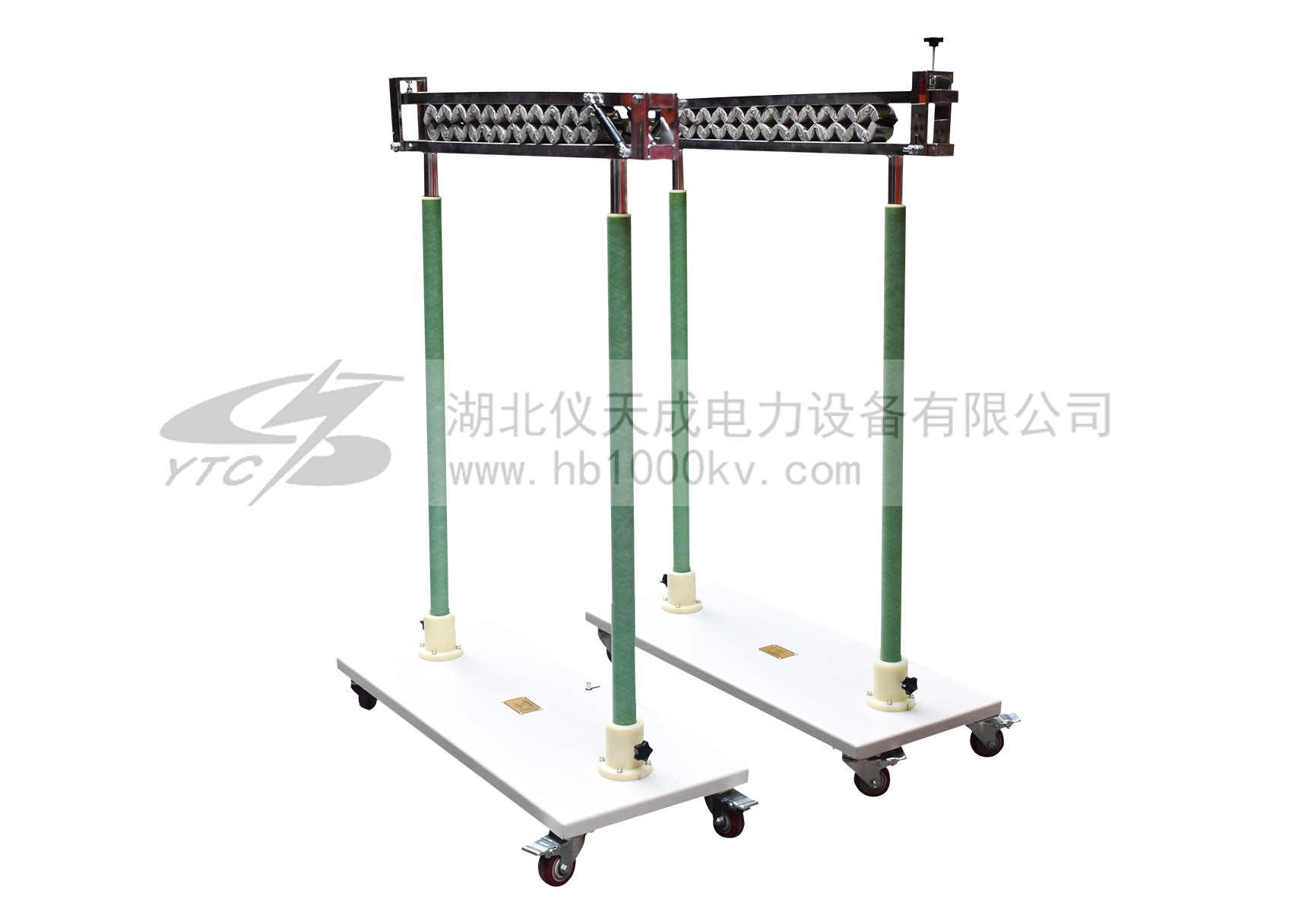 本公司生產的絕緣繩耐壓試驗支架是依據中華人民共和國國家發展改革委員會發布的中華人民共和國電力行業標準DL/T976-2015《帶電作業工具、裝置和設備預防性試驗規程》的要求基礎上研制而成,產品各項指標均符合國標要求。對大地采用高耐壓絕緣桿作為支撐。試驗電級板采用高強耐高壓復合絕緣板材,此板材具有防潮、防火、高耐壓重復性好等特性。