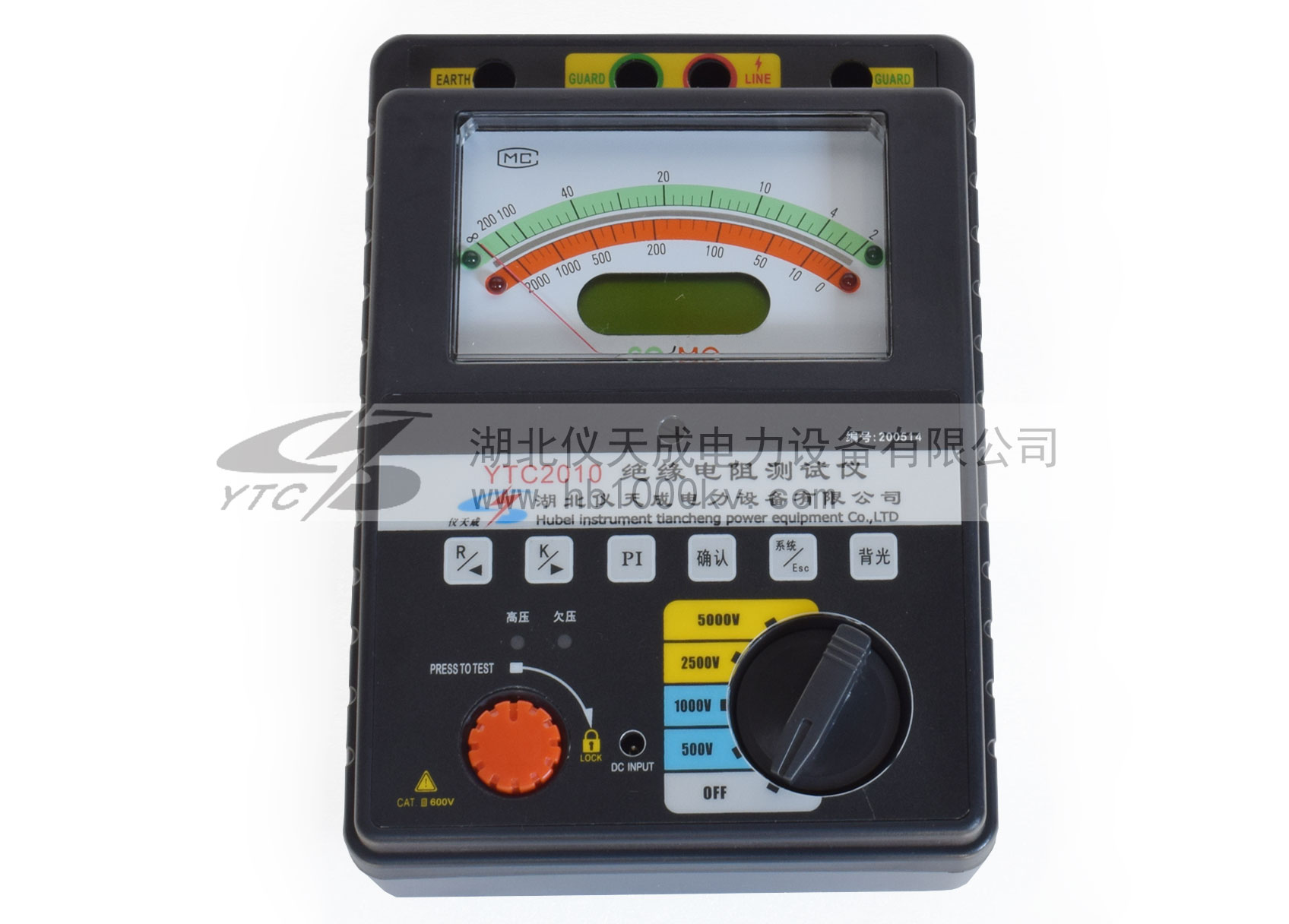 YTC2010智能雙顯絕緣電阻測試儀具有多種電壓輸出等級(500V、1000V、2500V、5000V)、容量大、抗干擾強、指針與數字同步顯示、交直流兩用、操作簡單、自動計算各種絕緣指標(吸收比、極化指數)、各種測量結果具有防掉電功能等特點。