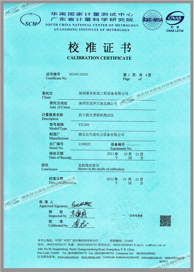轉(zhuǎn)載:"YTC309抗干擾介損自動(dòng)測(cè)試儀鑒定證書(shū)" 請(qǐng)注明來(lái)源于儀天成電力。 更多技術(shù)問(wèn)題請(qǐng)致電儀天成電力客戶服務(wù):027-87876585,技術(shù)部專線:027-87876585,在線客服: